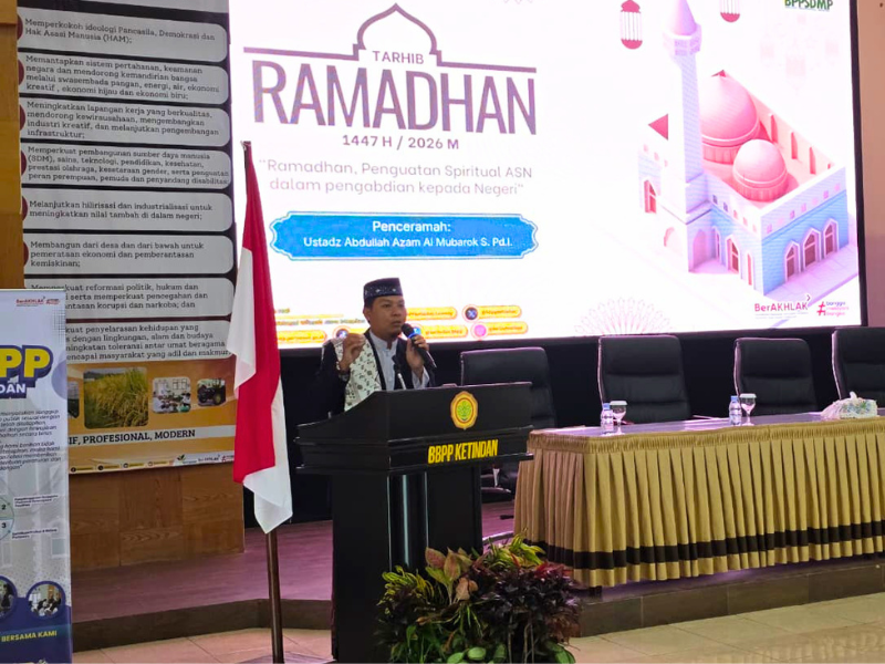 Balai Besar Pelatihan Pertanian (BBPP) Ketindan menggelar Pengajian Tarhib Ramadhan 1447 Hijriah/2026 Masehi dengan tema “Ramadhan, Penguatan Spiritual ASN dalam Pengabdian kepada Negeri”. Kegiatan ini diikuti oleh seluruh pegawai sebagai bagian dari pembinaan mental dan spiritual dalam menyambut bulan suci Ramadhan.